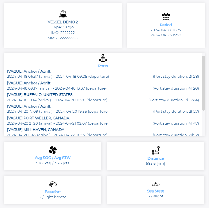 A service for marine professionals and enthusiasts who need a detailed insight into vessel operational conditions during the voyage.